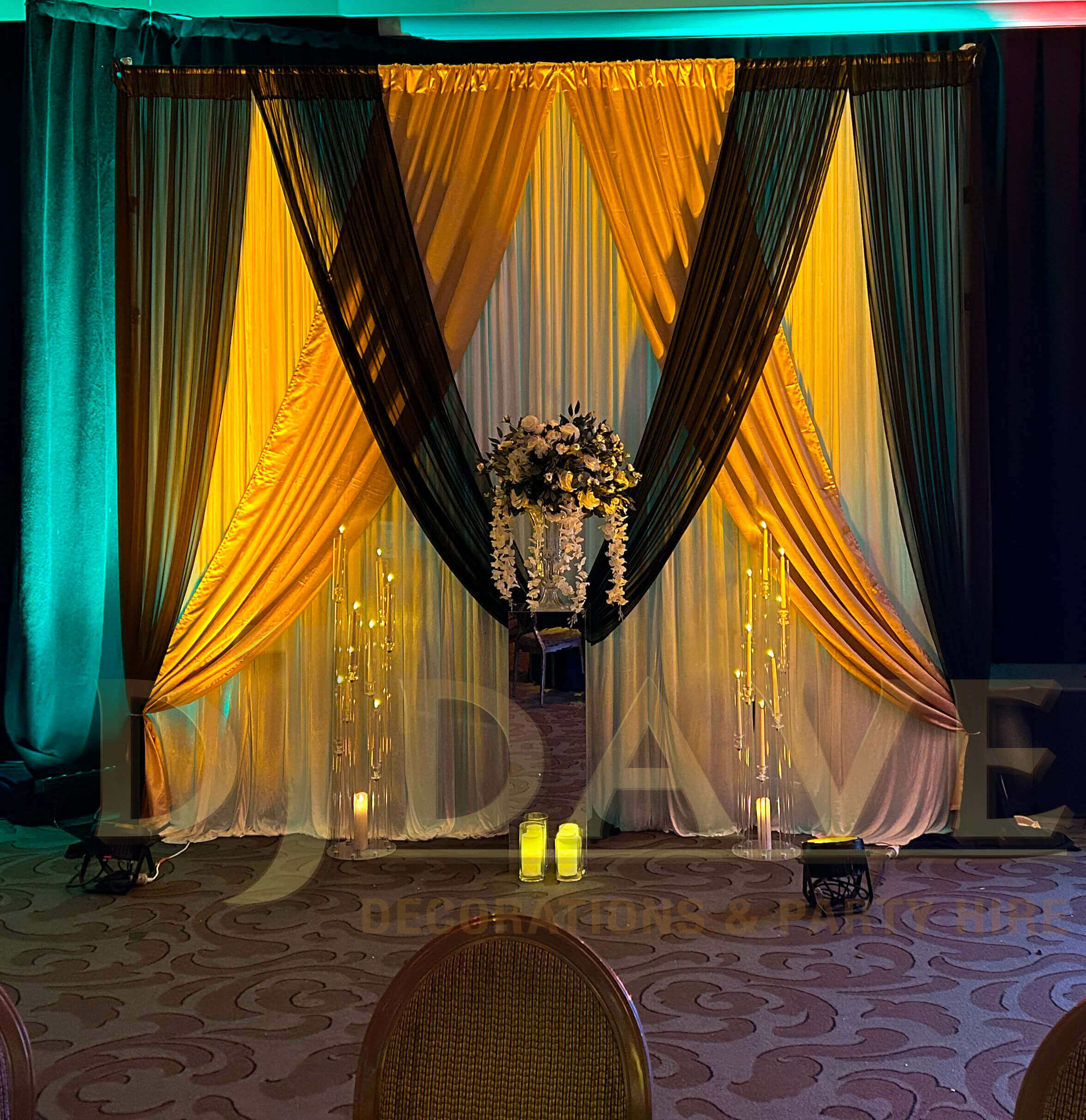 Create a professional and stylish atmosphere with our corporate backdrop with candle stands. Perfect for conferences, meetings, and corporate events, this setup provides a sleek and elegant background with the added warmth of candlelight, enhancing your event’s ambiance. Customizable to suit your brand and theme.